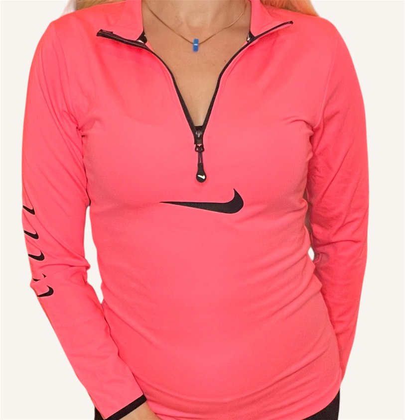 Pembe, fermuarlı V-yaka ve uzun kollu, sentetik kumaştan mini spor üst. Renkli baskılı deseniyle spor ve sokak stiline uygun. ♀️ Nike markalı M beden Diğer bedenler için iletişime geçebilirsiniz