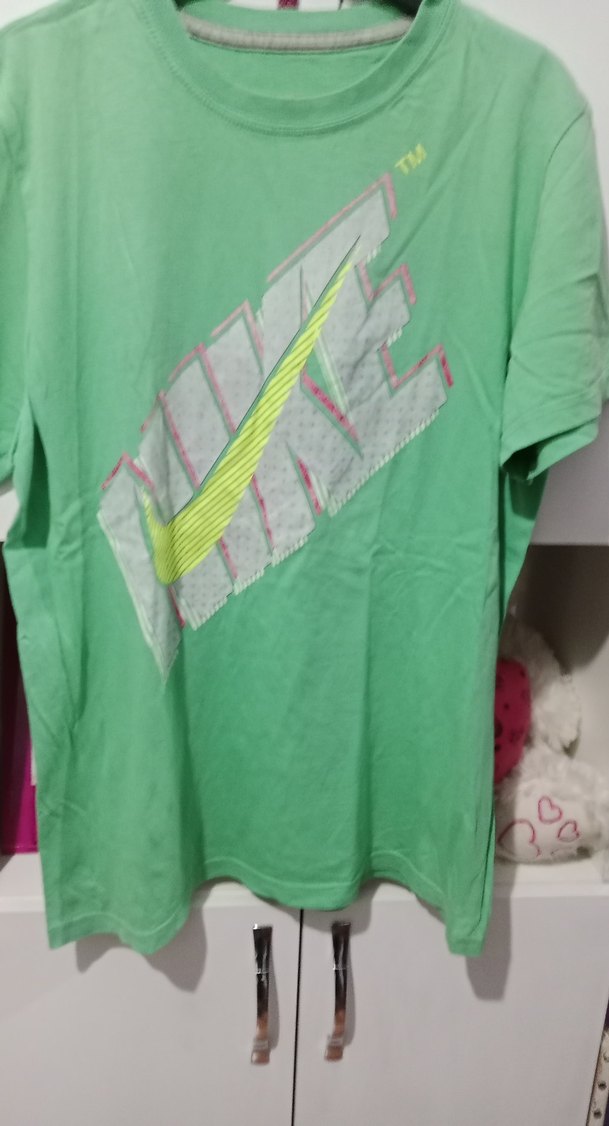 Nike yeşil kısa kollu tişört, rahat kesim ve yuvarlak yakalı, yumuşak sentetik kumaştan, baskılı logo ve cırt cırt detaylı, spor ve gündelik kullanım için uygun. ♀️