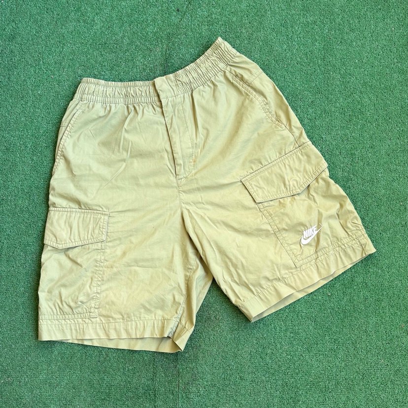 Orjinaldir kalıbı m bedene uyar çok nadir parça Nike marka, pamuklu kumaştan yapılmış, pastel yeşil renkte, rahat kesim ve kısa boy erkek şort. Sokak stili ve dış mekan kullanımı için uygun.