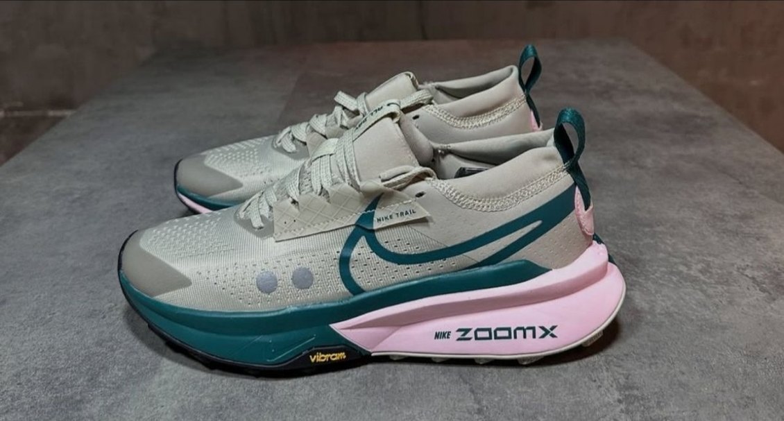 Nike ZoomX erkek koşu ayakkabısı, gri ve beyaz baskılı tasarım, cırt cırtlı ve kauçuk tabanlı, sportif sokak stili için uygun.