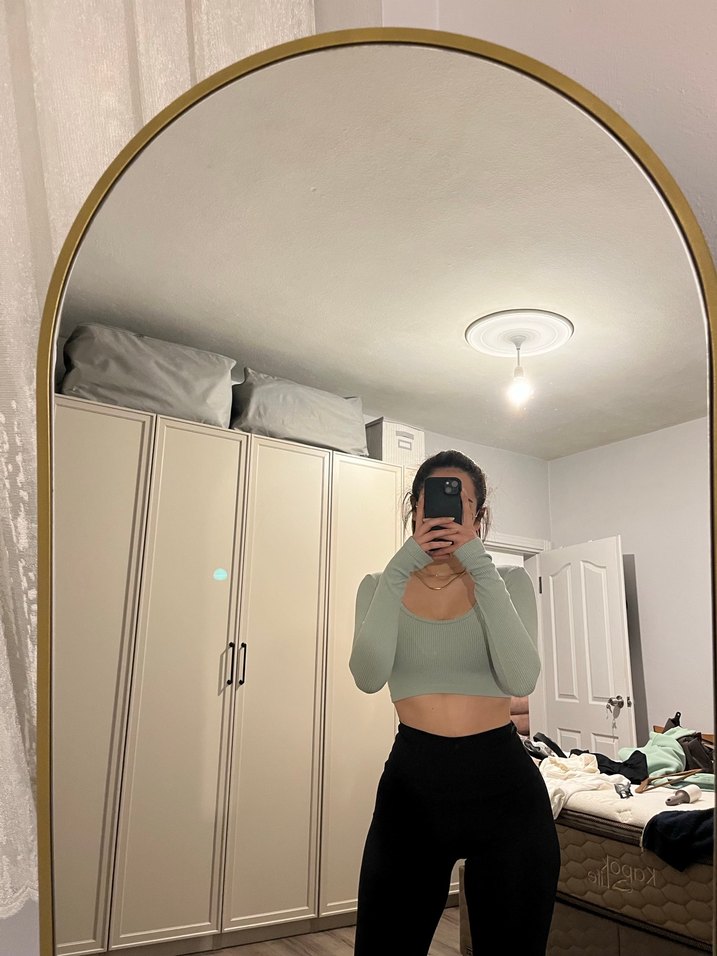 Nil yeşili, fitilli kumaşa sahip addax marka crop body.