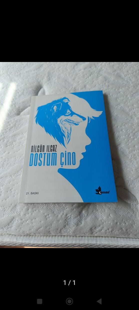 Nilgün Ilgaz'ın "Dostum Çino" romanı, mavi silüetli kapak tasarımına sahiptir. Çınar yayınevinden 21. baskıdır.