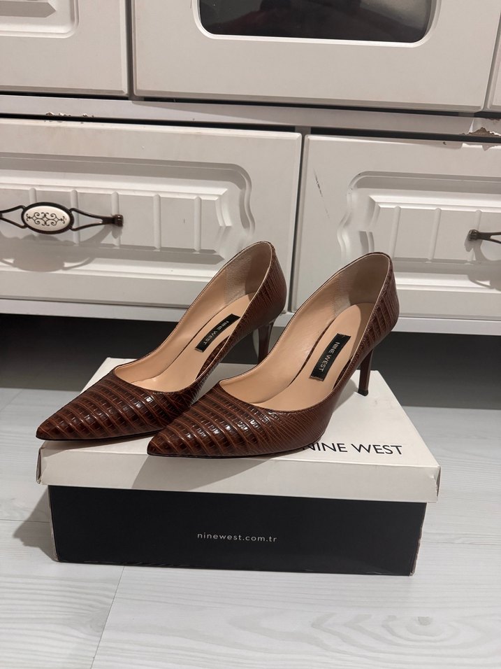 NINE WEST Kadın Kahverengi Deri Stiletto Topuklu Ayakkabı