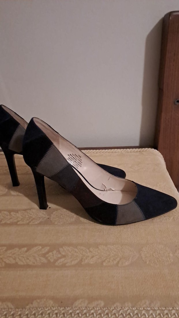Siyah süet malzemeden, tokalı ve desenli stiletto. Klasik ve çağdaş tarzı ile ofis kullanımı için uygundur. ayakkabinin ic kisminda kucuk bir alanda soyulma var resimde gorunuyor