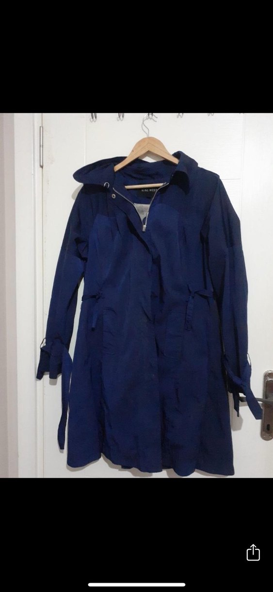 Nine west marka Kemerli Midi Lacivert Yağmurluk