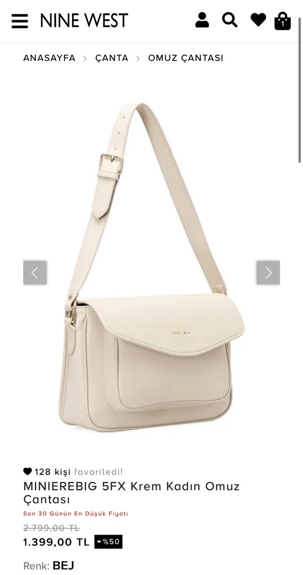 Orijinal Nine West markalı krem omuz çantasıdır. Çantayı indirim öncesi almıştım ama hiç kullanmadım ve çanta kılıfıyla vs dolabımda duruyordu. Kullanmayı da düşünmediğim için satıyorum. Dilediğiniz soruyu sorabilirsiniz seve seve yardımcı olurum İç Özellik: İki Bölmeli & Cepli Ölçü(Cm): 28*20*9 Cm Askı Boyu:76 Cm