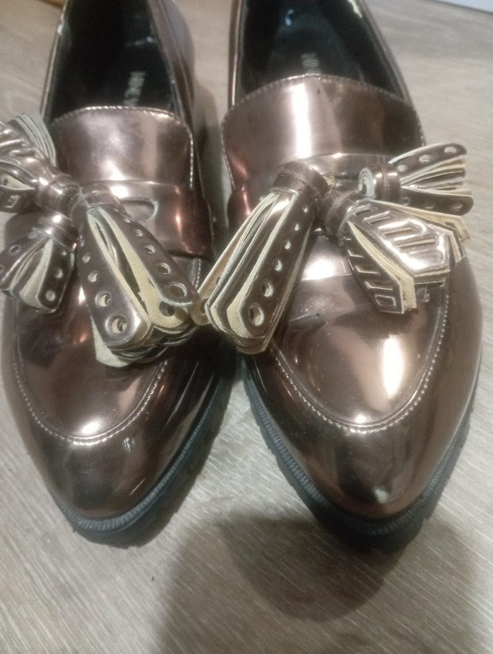 blok topuklu kadın Oxford ayakkabısı, metal tokalar ve yılan derisi deseniyle modaya uygun, avangart tarzda.