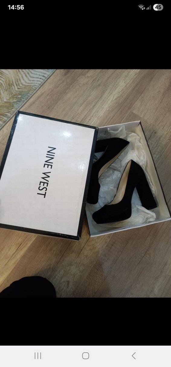 Nine West Siyah Süet Platform Topuklu Kadın Ayakkabı