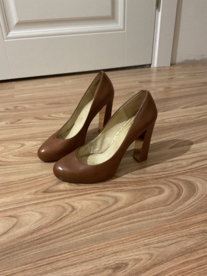 Aslında rengi cok hos ve giyimi topuk boyuna göre konforlu oldugu ıcın satmayacaktım ama topuklu cok tercih etmiyorum gündelik hayatimda, orijinal nine west ürünü 2. El aldım ama hic giymedim, topuk boyu 12 santim 39 numara, aldıgımda ici soyuluyordu ben de daha fazla dokulmesin de soydum icini.