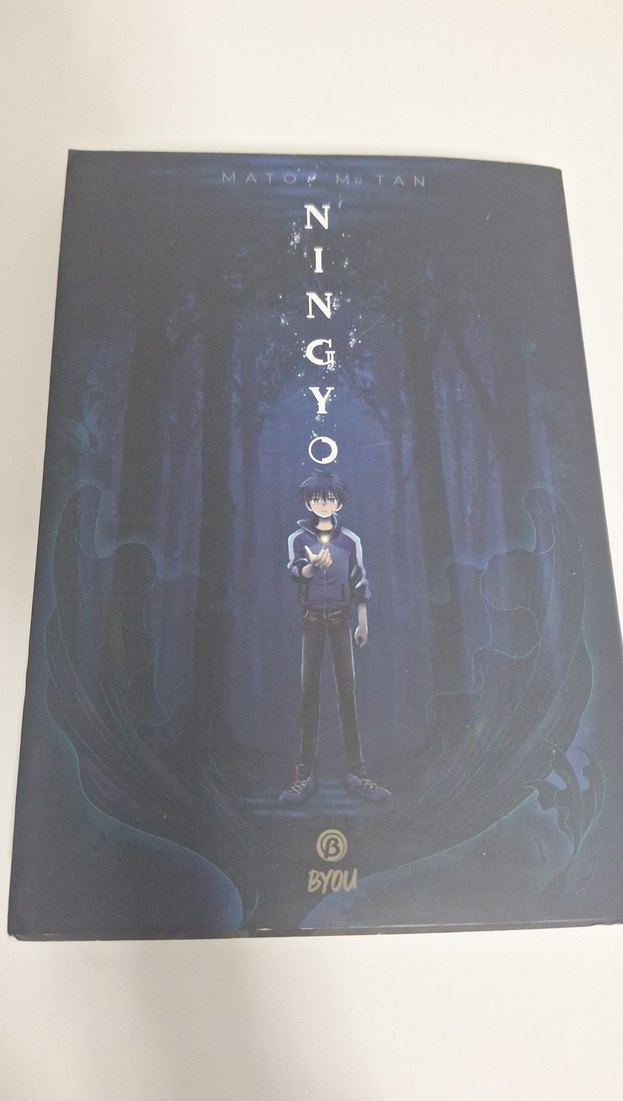 Mato Mitan tarafından çizilen 'Ningyo' adlı çizgi roman, karanlık ormanda geçen gizemli bir sahneyi ve ışık tutan bir karakteri gösterir.
