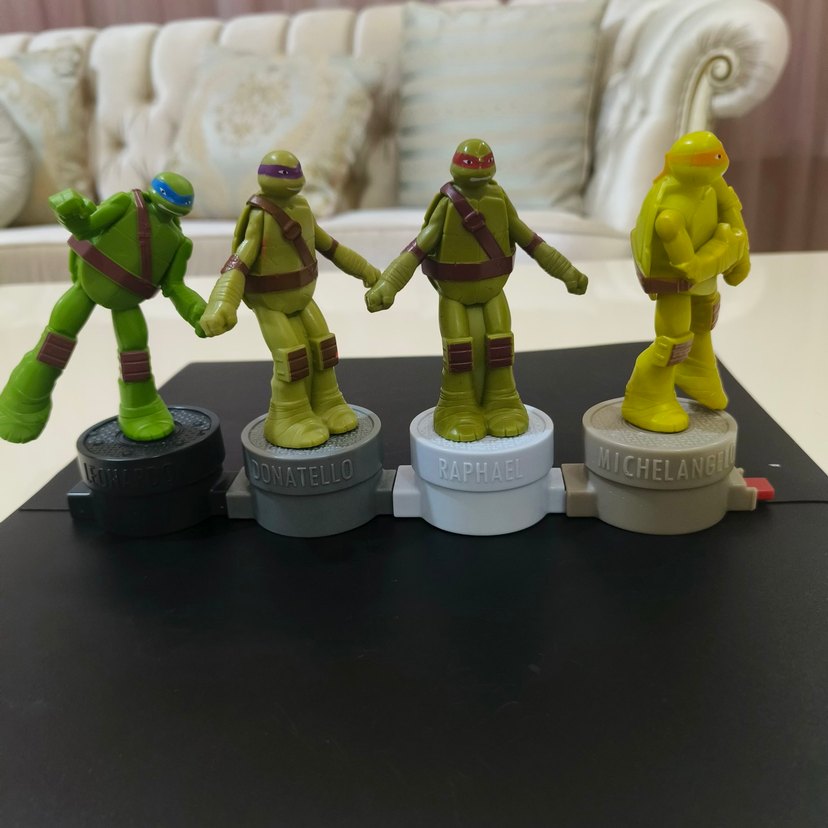 Ninja Kaplumbağalar hayranları için gerçek bir koleksiyonluk parça olan bu tam set, 2017 Burger King orijinal lisanslı figürlerinden oluşmaktadır. Ürünlerin en büyük özelliği, alt kısımlarındaki özel stantların birbirine geçerek bir bütün oluşturmasıdır. Stantlar üzerinde her karakterin kendi ismi (Leonardo, Raphael, Donatello, Michelangelo) yazılıdır. Koleksiyon dünyasında bu seri için sıkça söylendiği gibi; "This is a complete set of Teenage Mutant Ninja Turtles figures from 2017 Burger King." Ürün Detayları ve Durumu: Karakterler: Leonardo, Raphael, Donatello ve Michelangelo eksiksiz olarak tam set halindedir. Kondisyon: Figürler oldukça temiz, kırığı veya parça eksiği olmayan nostaljik ve kaliteli oyuncaklardır. Orijinallik: 2017 yılı üretimi her figür orijinal lisanslı Burger King ürünüdür. Bu TMNT figür seti, hem sergilemek hem de koleksiyonunu tamamlamak isteyenler için mükemmel bir fırsattır. Retro oyuncak meraklılarının kaçırmayacağı bu seti tam kadro olarak gönderiyorum