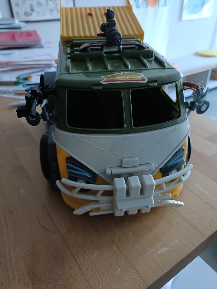 Ninja Kaplumbağalar, Party Vagon TMNT araç. Gri ve deve tüyü renklerinde, üzerinde silah detayları ve sağlam ön koruma ızgarası bulunur.