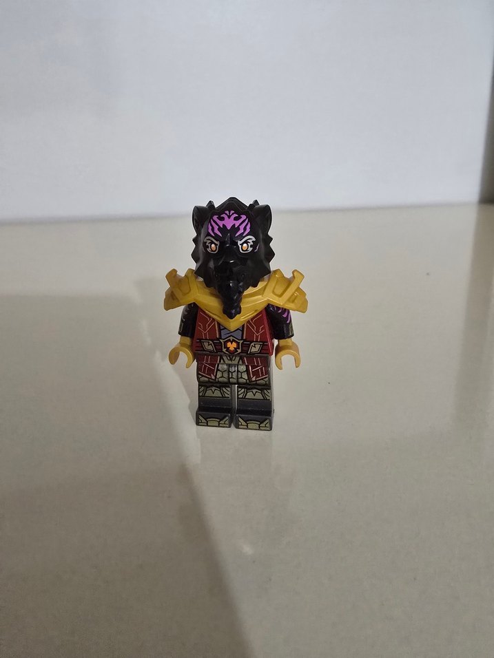 NİNJAGO LORD RAS Altın detaylara ve mor yüz desenine sahip karanlık temalı Lego figürü, detaylı desenleri ve gizemli görünümüyle dikkat çekiyor.
