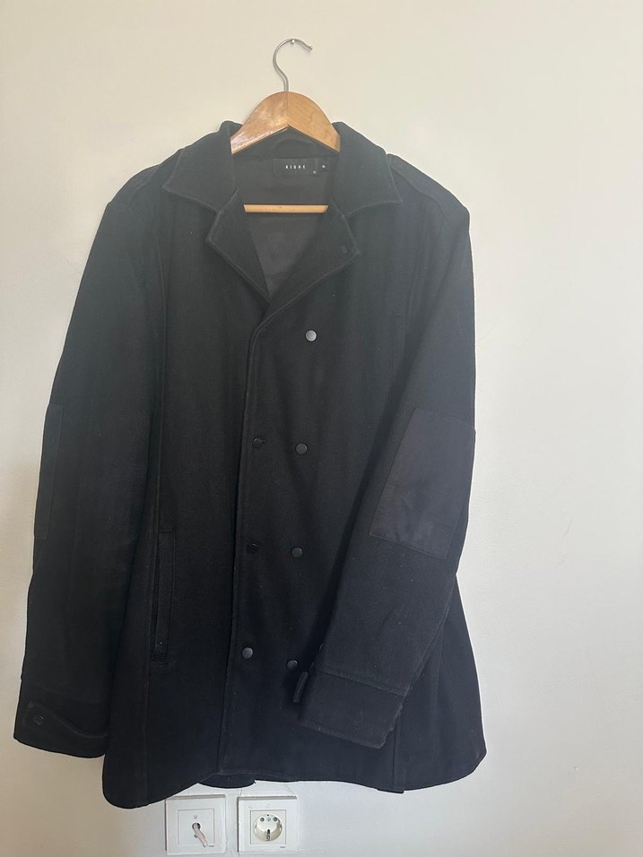 Nique marka, siyah renkte, uzun ve çift sıra düğmeli kaşe kaban. XL beden, rahat/oversize duruşlu. Omuzlarda apolet detayları, yanlarda fermuarlı cepler ve kolda patch detayı olan modern bir model. İç astarı sağlam, formu bozulmamış. Yüzeyinde kumaşa özgü hafif tüylenme var, tüy toplayıcıyla kolayca temizlenebilir. Yurtdışından alınma, kaliteli kumaş ve işçilik. Ölçüler için üzerindeki not kağıdının göründüğü fotoğrafa bakabilirsiniz. Durum: Az kullanıldı, temiz. Sigara ve evcil hayvan olmayan ev.