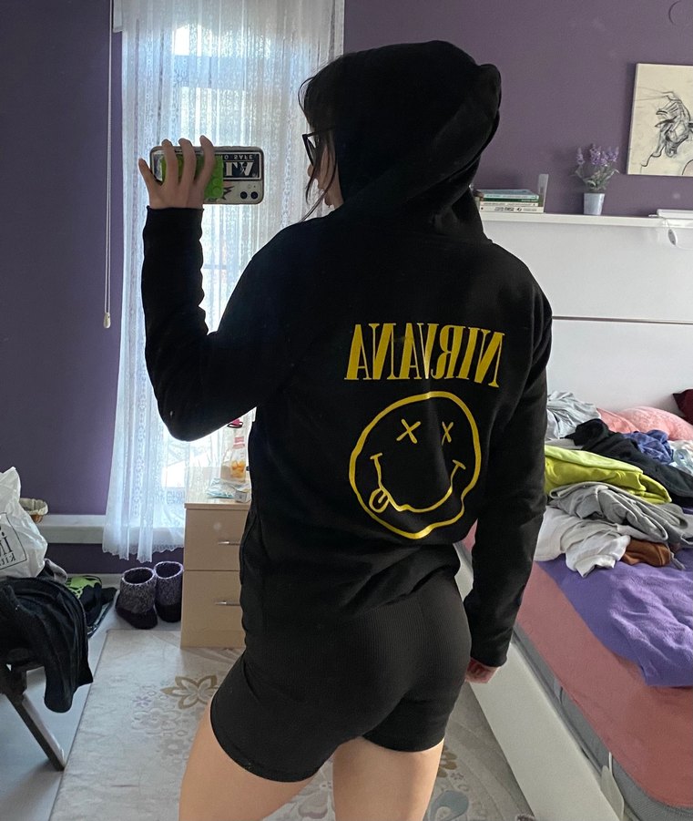 Nirvana Baskılı Siyah Kapüşonlu Sweatshirt Hırka