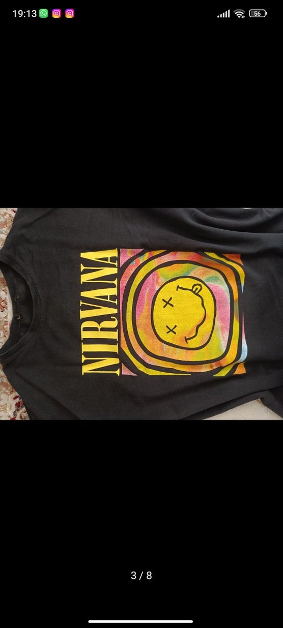 Siyah renk üzerine sarı “Nirvana” yazısı ve renkli gülücük detayları bulunan kışlık, ince yapılı kazak. Oversize duruşludur, her bedene uyum sağlayabilir. Tahmini 38-40 bedendir ama daha küçük bedenlerde bol, büyük bedenlerde ise normal ölçüde durur. Hem rahat hem tarz bir parça, günlük kombinlerde kolayca kullanılabilir.