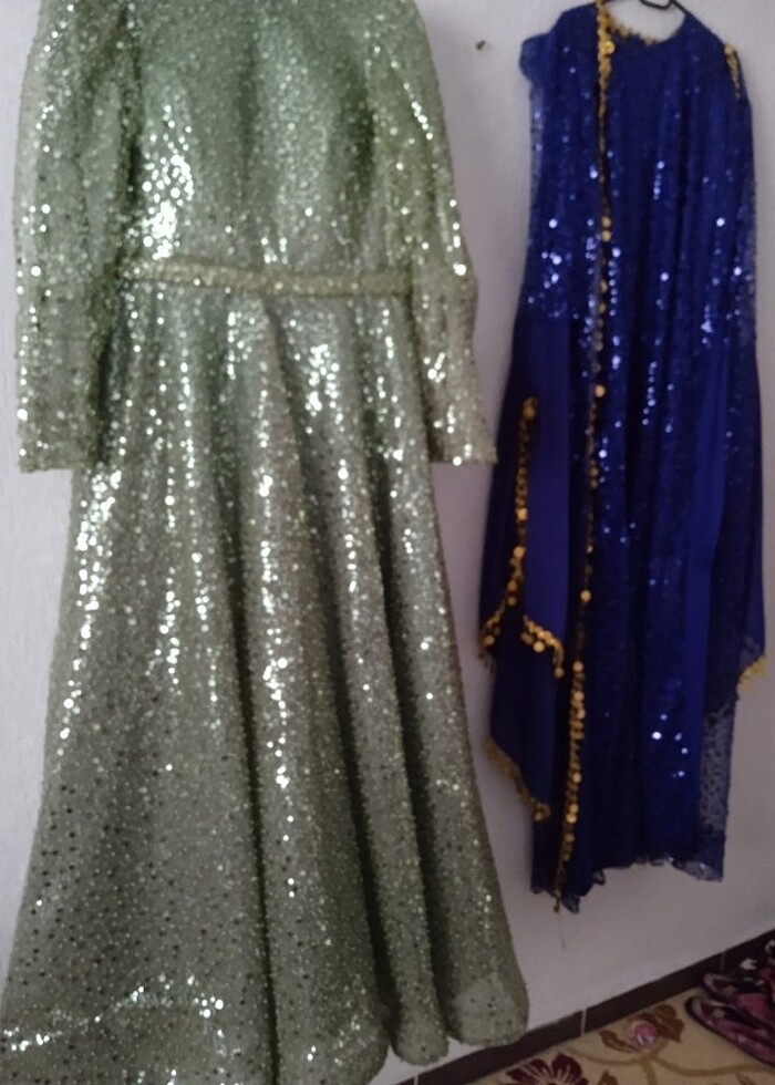 38 bedenden 44 bedene kadar uyumlu tamamen pul ve boncuk işlemeli su yeşili kabarık ve arkası ipli