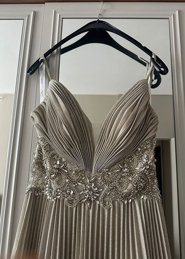 yalnızca bir kere giyildi, hiçbir sorunu yoktur. Oleg Cassini’den alındı. 8bin tlye almıştım, fiyatını inceleyebilirsiniz.