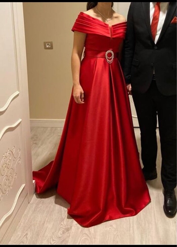 Ürünü nişanımda 3 saat giydim. 36-38 bedene uygundur.altı yapışkanla içe doğru katlanmış olup isterseniz açtırılabilir. Kuru temizlemesi yapılmıştır