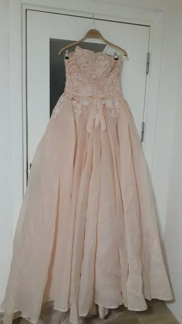 Güpür boncuk işlemeli sıfon nişanlık 38 beden straplez sadece fotografta belirttigim üzere etek kısmında cizik var.