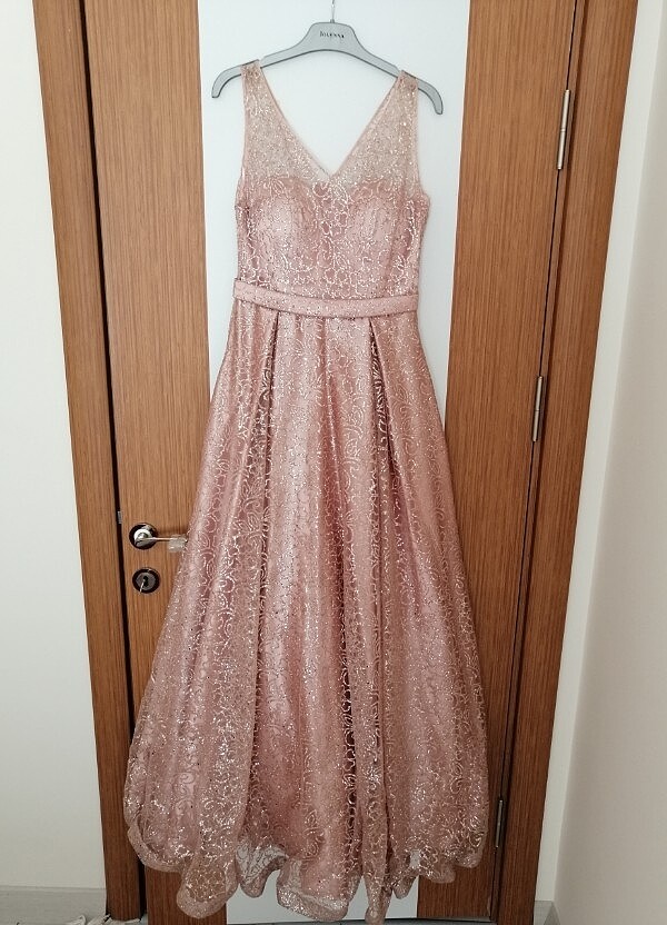 Simli pudra nişan elbisesi çok şık