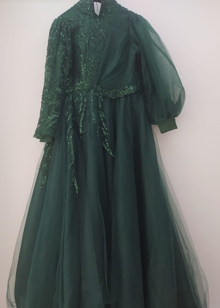 Ürünü sadece nişanımda giydim, herhangi hiçbir defosu yoktur tasarımcı tarafından özel dikim yapıldı. Koyu yeşil renge sahip 48-50 beden uyumludur dantel, pul, ve tül detayları ile birlikte çok şık nişan elbisesidir. Düşünüp almak isteyen benimle iletişime geçebilirler..