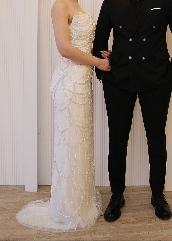 Özel tasarım nişan elbisesi kendi nişanımda giydim 1 kere kullanıldı kumaşı özel bir kumaştır incili isteğe göre gelinlik olarak bile kullanılabilir 36-38 beden alıcılar tercih edebilir