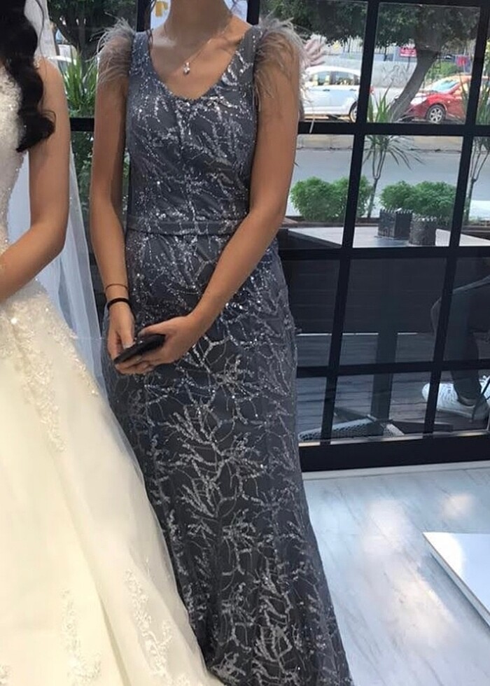 Ablamın düğününde bir kez giydim.34-36 beden uyumludur gri mavi arası bir renk
