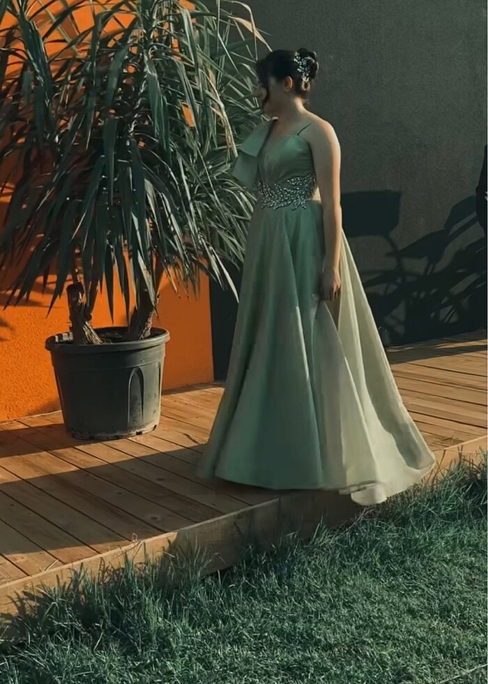 Nişanımda giydim 40-42 beden hiçbir deformesi yok sadece telası koptu