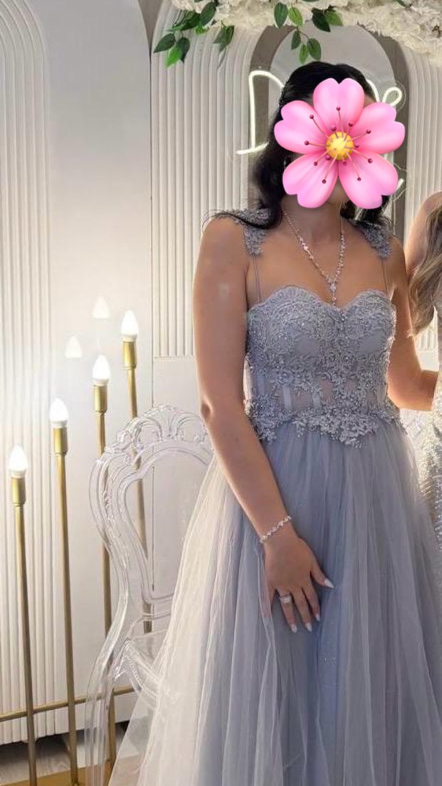 Gri renkte, dantel nakışlı detaylara sahip 36 beden elbisem . Elbiseyi sadece evde nişanımda 2 saat giydim . Çok güzel parıl parıl minnoş bir elbise midi boy
