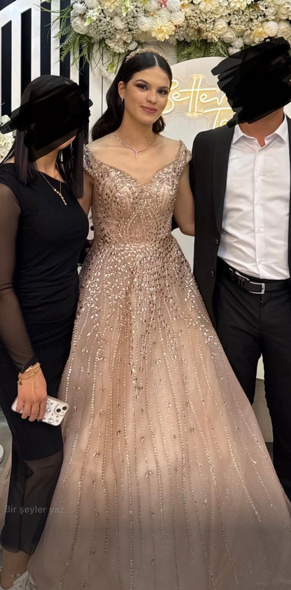 Nişanımda tercih ettim Çok şık ve modern bir model “Arya Moda markası” Rengi pudra camel tonlarında Tarlatansız duruşunda en son fotoğrafa ekledim