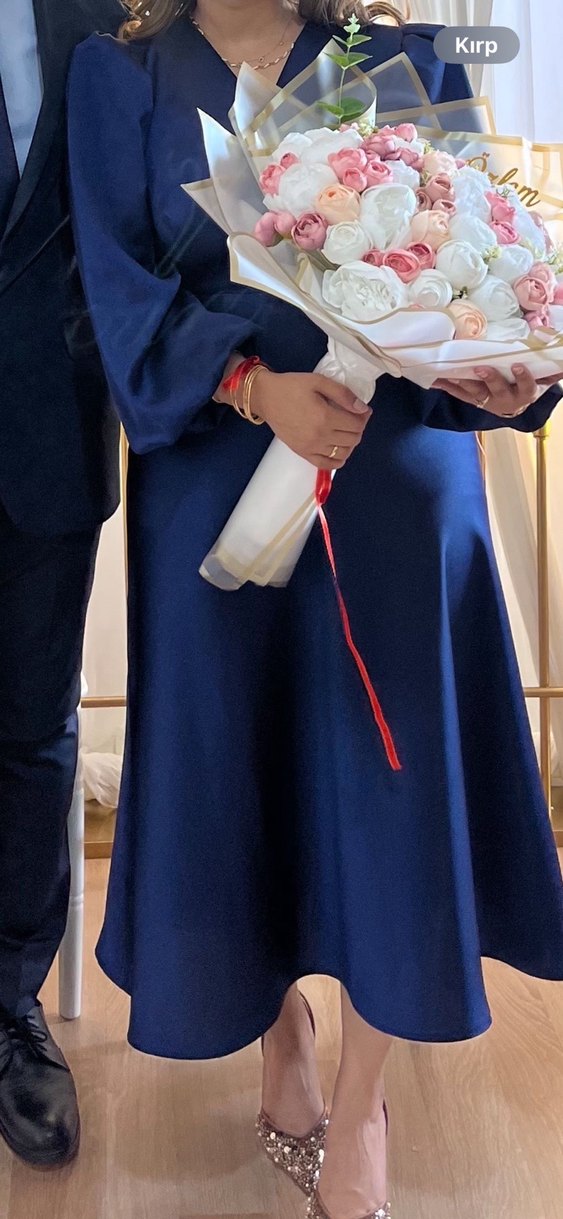 Betty & Sam marka 42 beden elbise. Koyu mavi, kruvaze yaka. Kolları lastik detaylı, sırtı fermuar kapamalı, eteği kloş formda. Sadece nişanımda giydim, güncel fiyatı 3.399 TL olarak gözüküyor Trendyolda. Tekrar giyemeyeceğim için satıyorum
