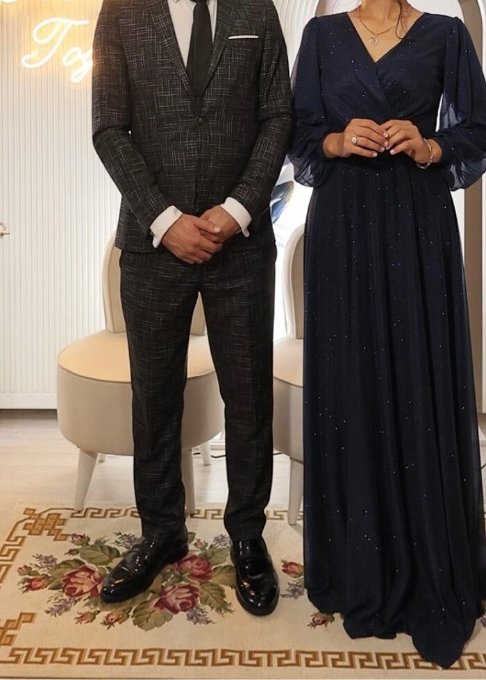 Nışanda bi kaç saatlığına kullandığım elbise Tesettüre girdiğim için satmak istedim değerlendirmek istedim. Ürün lacivert simli abiye iç göstermez ince V yaka kolları lastikli 170 boyunda olmama rağmen parmak ucuma kadar geliyordu elbise M beden likralı genişliyor