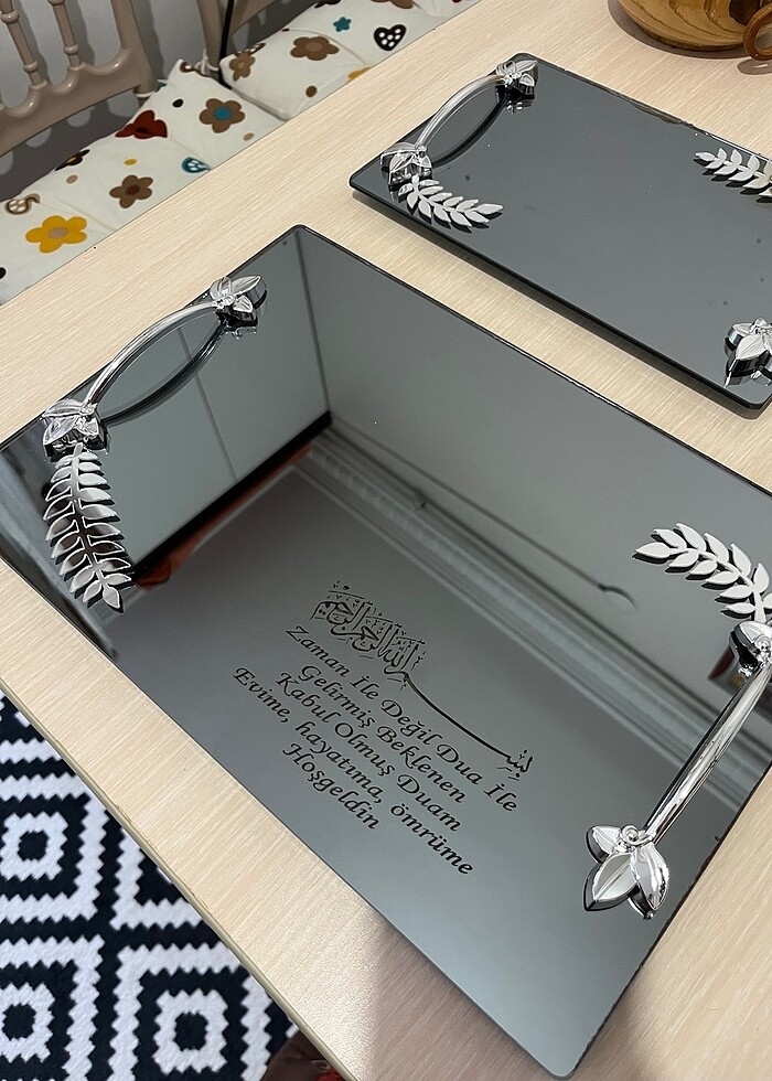 Fincan,lokumluk,makas,iğnelik,su bardağı ve çiçek koymalık küçük saksı, ben çiçeği örnek olması için koydum siz istediğiniz çiçeği koyabilirsiniz. Kutunun içine ben ayrıca ip ve iğnede koydum.