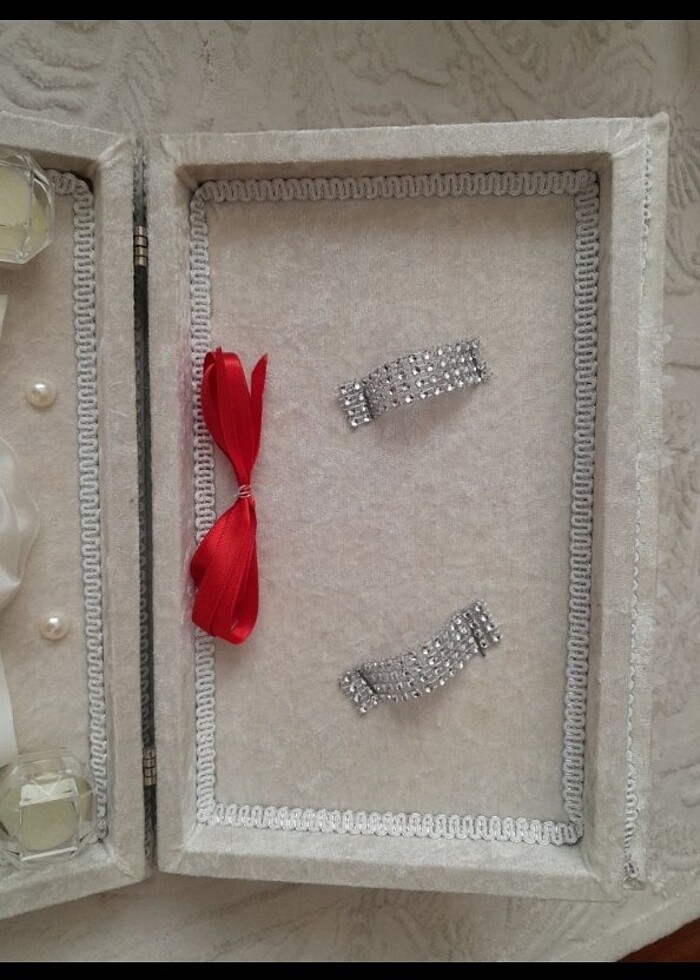 SIFIR ÜRÜN. İçerisinde yüzük bölmeleri, kurdele ve makas vardır