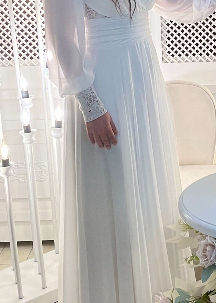 Beyaz uzun elbise çok rahat şık.nikah içinde uygundur