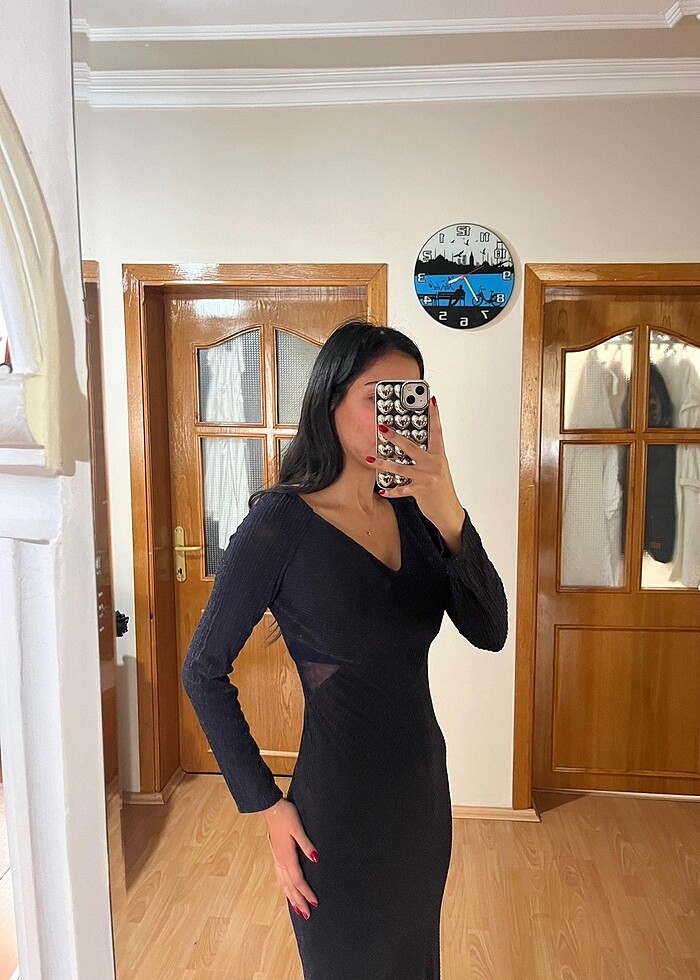 Ürün bel kısmındaki o güzel transparan detay çok şık kendinden parıltılı elbise