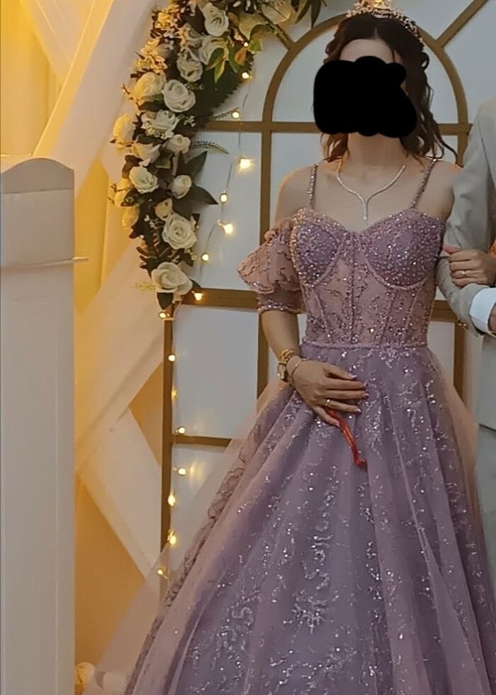 Özel tasarım nişanlık 34 beden 48 kilo 1.60 boyundayım 7vm topuk ile giydim Yanında taç hediye verilecektir. Taç elbise ile aynı renktedir. Hiçbir kusuru yoktur Tarlatanı ayrı olarak giyilmektedir.