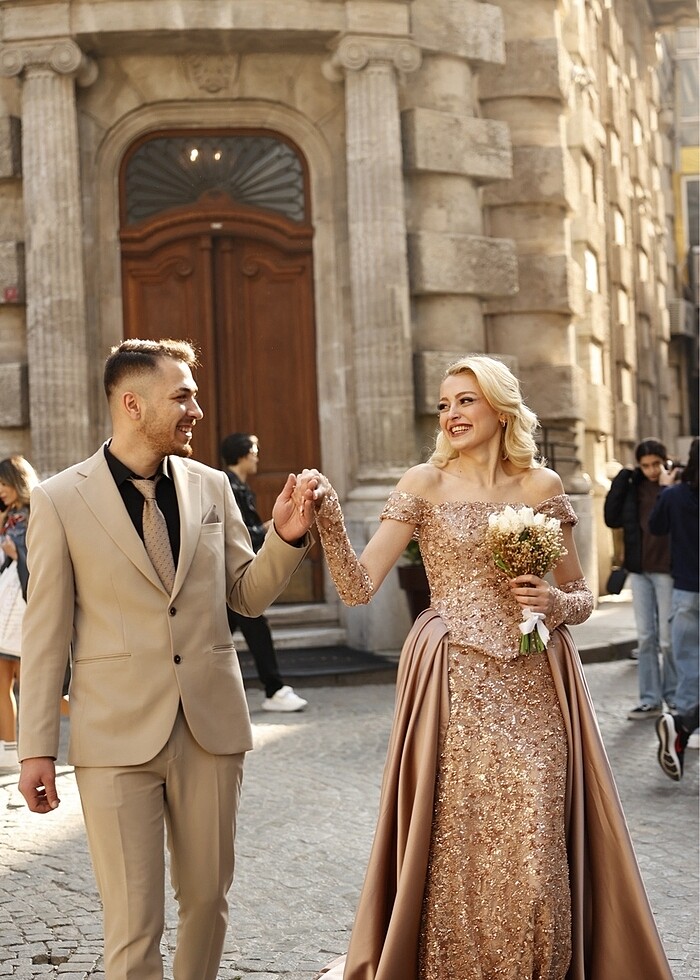 nişanımda özel diktirdim kolluğuda var dantelli biraz ağır bir model eteğiyle korse kısmı ayrı fiyatta yardımcı olurum 35 e diktirdim 36 beden ama 38 olur arkası ipli olduğu için