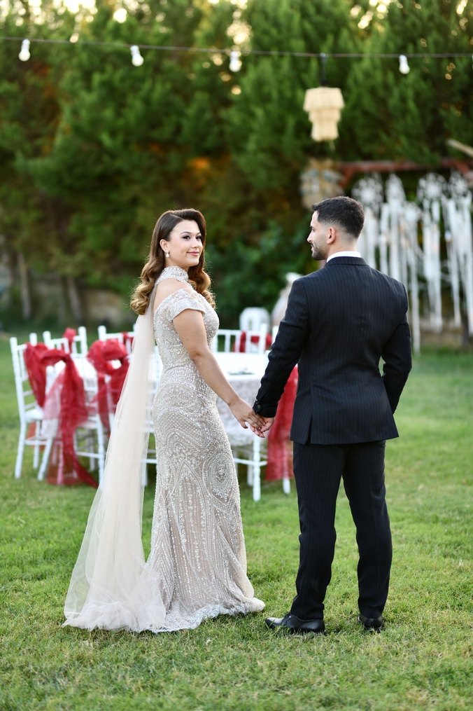 Sadece bir kere nişanda giyildi hiç bir kusuru yok full taş işlemeli boynundaki detayla birlikte gönderiliyor S/M beden uyumlu arkası korse ipli 13cm topukluyla giyildi boyum 163