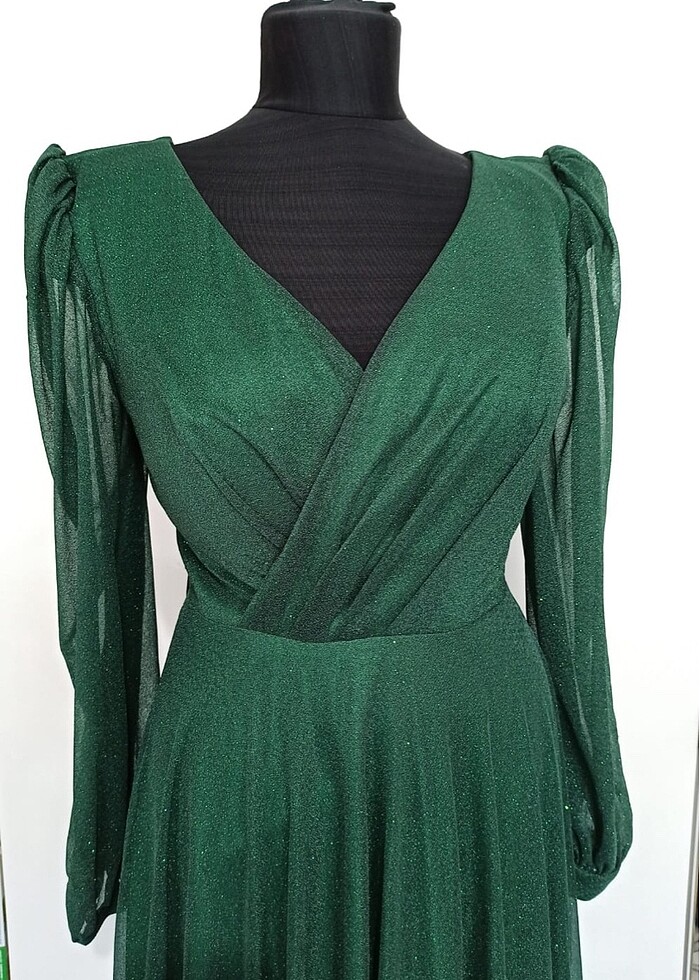 Kına rengi (yeşil) nişan elbisesi Simli v yaka abiye 44 beden