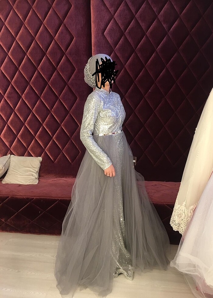 Sadece kendi nişanımda bir kere giydim bir daha giymedim hiç bir sıkıntısı yok oturtmalı bir elbisedir 38 bedendir kuru temizleme yapılmadı