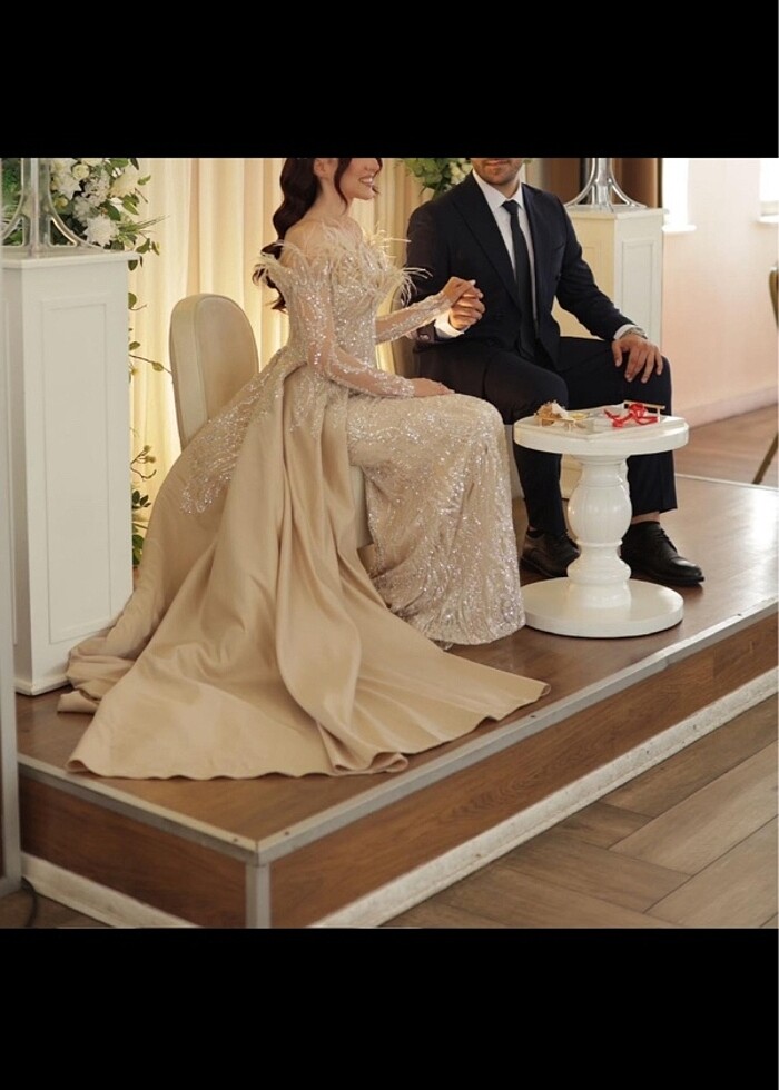 Ürünü özel diktirdim nişanımda kullandım demonte kuyruklu bayılarak giydiğim bi ürün arkası ipli olduğu için 36-38 bedene uyumludur . Boyum 160 13cm topukluyla giydim kilom 53