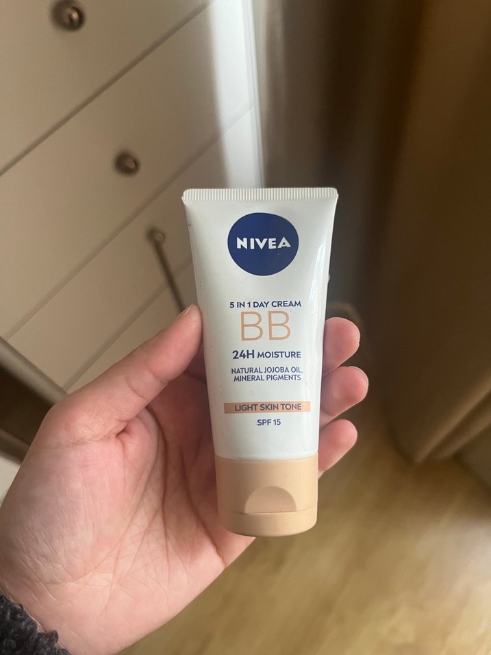 NIVEA BB krem, açık ten rengi ile 24 saat nem sağlar. Doğal jojoba yağı ve mineral pigmentler içerir. SPF 15 koruması sunar.