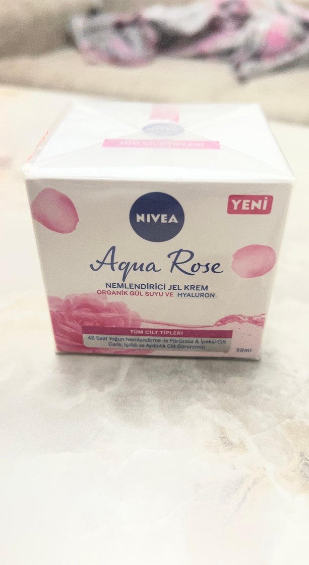 Nivea Aqua Rose nemlendirici jel krem, organik gül suyu ve hyaluron içerir. Tüm cilt tipleri için uygundur, 48 saat nemlendirme sağlar.