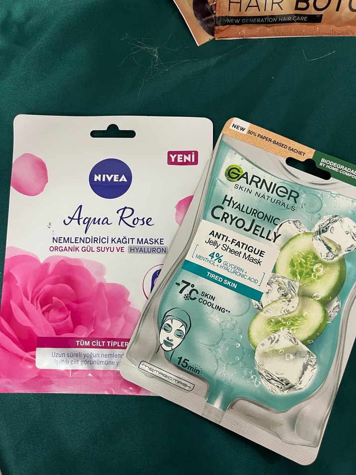 Nivea Aqua Rose ve Garnier Hyaluronic CryoJelly Maske