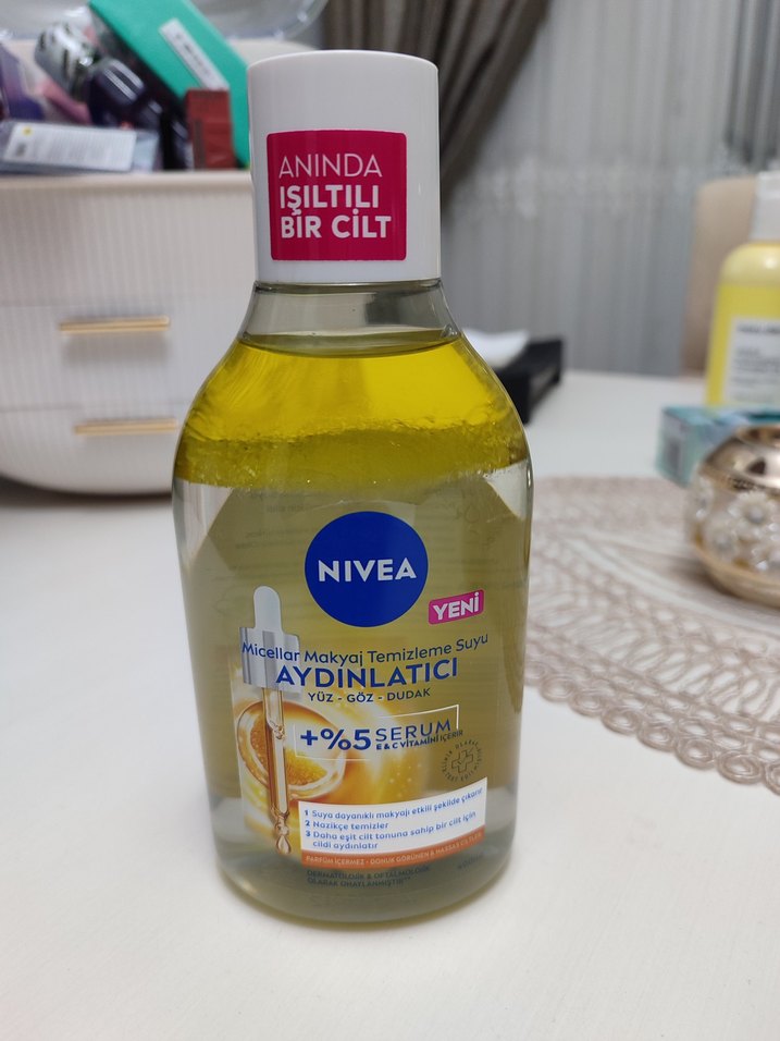 sıfır orjinal Nivea'nın %5 serumlu aydınlatıcı makyaj temizleme suyu, yüz, göz ve dudaklar için. Anında ışıltılı bir cilt sağlar. ✨