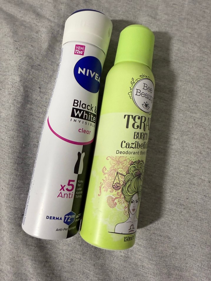 Nivea Black & White Invisible 72 saat koruma ve Tera Burcu Cazibeli deodorant 150 ml, özel kokulu iki kadın deodorantı seti.