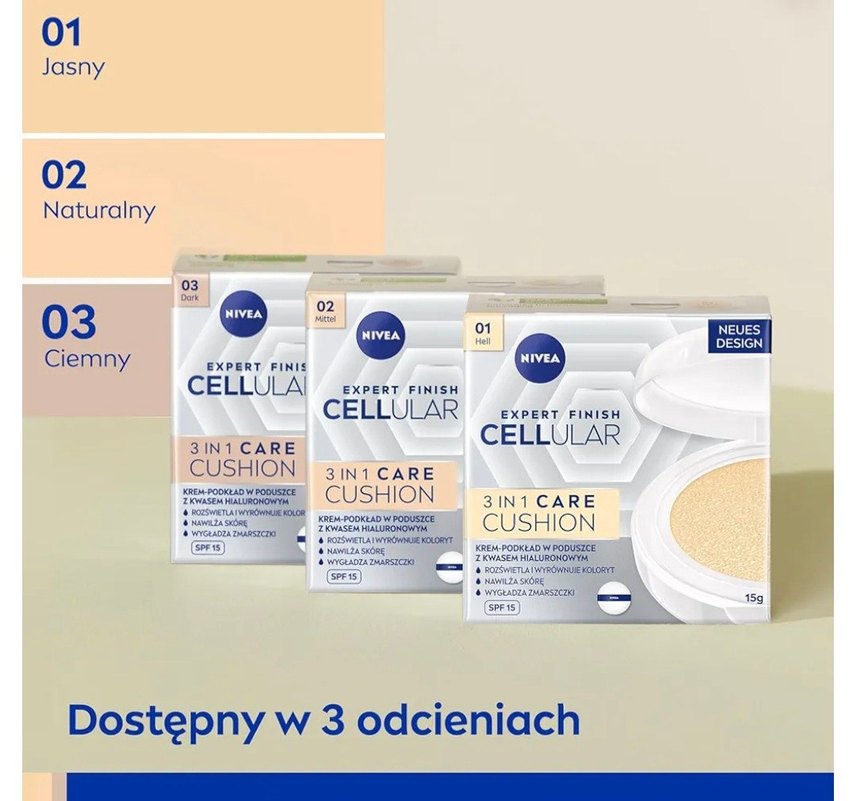 Nivea Cellular Expert Finish BB Krem cushion, hyalüronik asit, SPF15 içerir. Ten rengini eşitler, kırışıklıkları giderir. Pastel bej tonunda, 3 etkili bakım sunar.