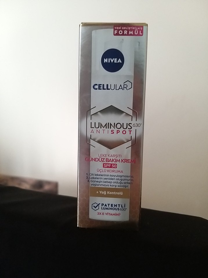 Nivea Cellular Luminous 630 Antispot açık bej tonunda SPF 50 korumalı, leke karşıtı ve yağ kontrolü sağlayan gündüz bakım kremidir.